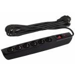Наименование в каталоге Сетевой фильтр SFX-6es-4m-B с надежной защитой с заземлением с выключателем 6 розеток 4м 10А черный