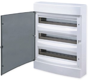 Наименование в каталоге Щит распределительный навесной Unix прозрачная дверь 3х18 модулей IP40 PROxima