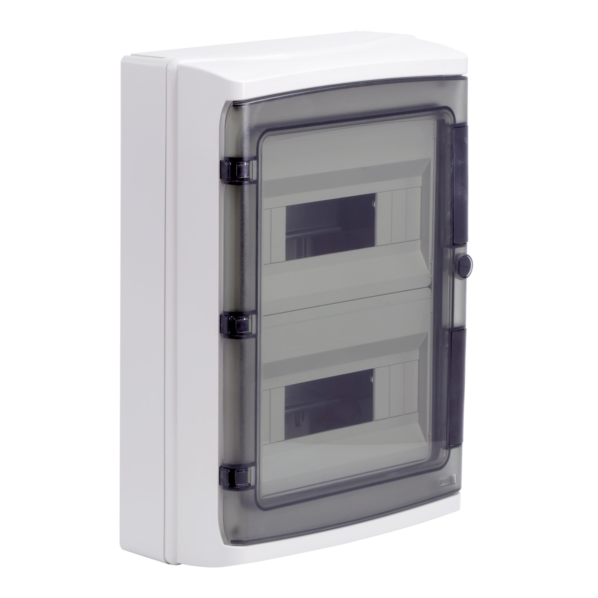 Щиток настенный с дверцей 24 мод.,IP65, серый, с клеммным блоком 63А