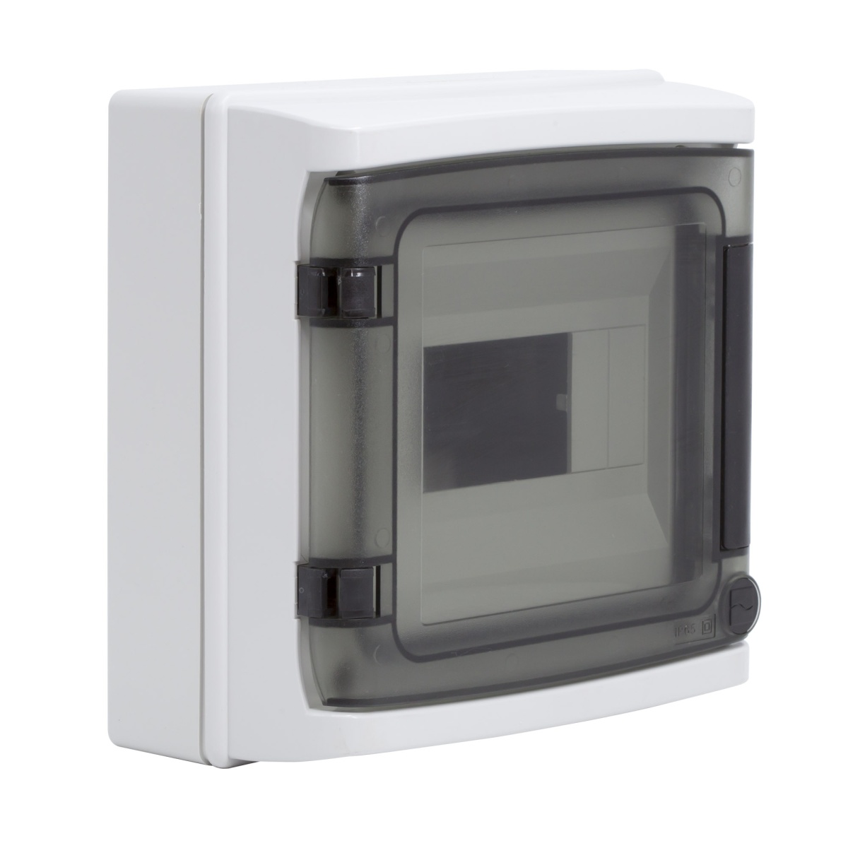 Щиток настенный с дверцей 8 мод.,IP65, серый, с клеммным блоком 63А