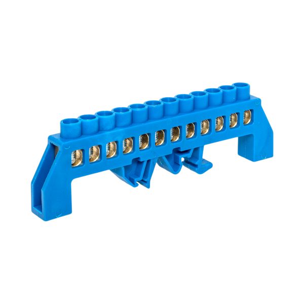 Шина 0 N (8х12мм) 12 отверстий латунь синий нейлоновый корпус комбинированный розничный стикер PROxima EKF sn0-125-12-dn-r