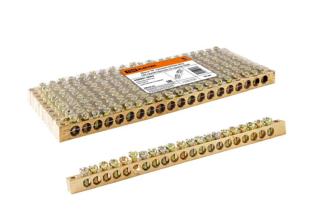 Шина "N" нулевая 6х9мм 20/2 (20 групп/крепеж по краям) TDM