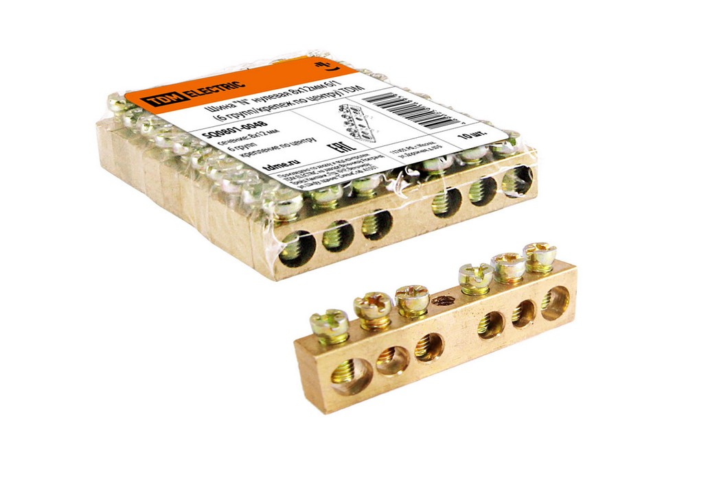 Шина "N" нулевая 8х12мм 6/1 (6 групп/крепеж по центру) TDM