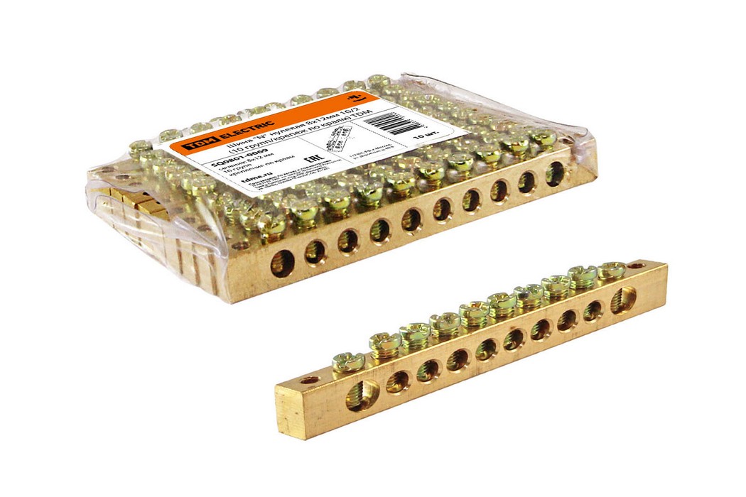 Шина "N" нулевая 8x12мм 10/2 (10 групп/крепеж по краям) TDM
