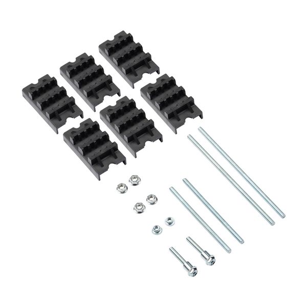 Описание Система наборных шинодержателей позволяет создать требуемую конфигурацию шинодержателя в зависимости от требований проекта. Основанием служит прочный алюминиевый перфорированный профиль, на который насаживаются изоляторы для установки силовых шин ребром. Изоляторы имеют различное исполнение, обеспечивающее возможность установки шин толщиной 5 и 10 мм в количестве от 2-х до 4-х на одну фазу. В составе комплектов идёт необходимый крепёж: гайки, шпильки, винты.