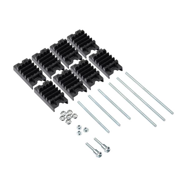 Описание Система наборных шинодержателей позволяет создать требуемую конфигурацию шинодержателя в зависимости от требований проекта. Основанием служит прочный алюминиевый перфорированный профиль, на который насаживаются изоляторы для установки силовых шин ребром. Изоляторы имеют различное исполнение, обеспечивающее возможность установки шин толщиной 5 и 10 мм в количестве от 2-х до 4-х на одну фазу. В составе комплектов идёт необходимый крепёж: гайки, шпильки, винты.