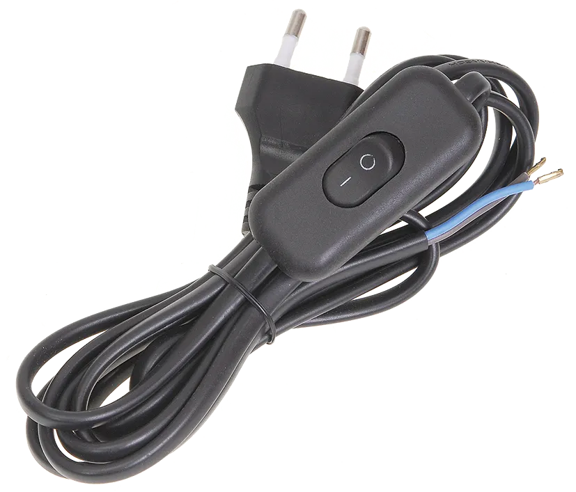 Шнур УШ-1КВ опрессованный с вилкой со встроенным выключателем 2х0,75/2метра, черный ИЭК