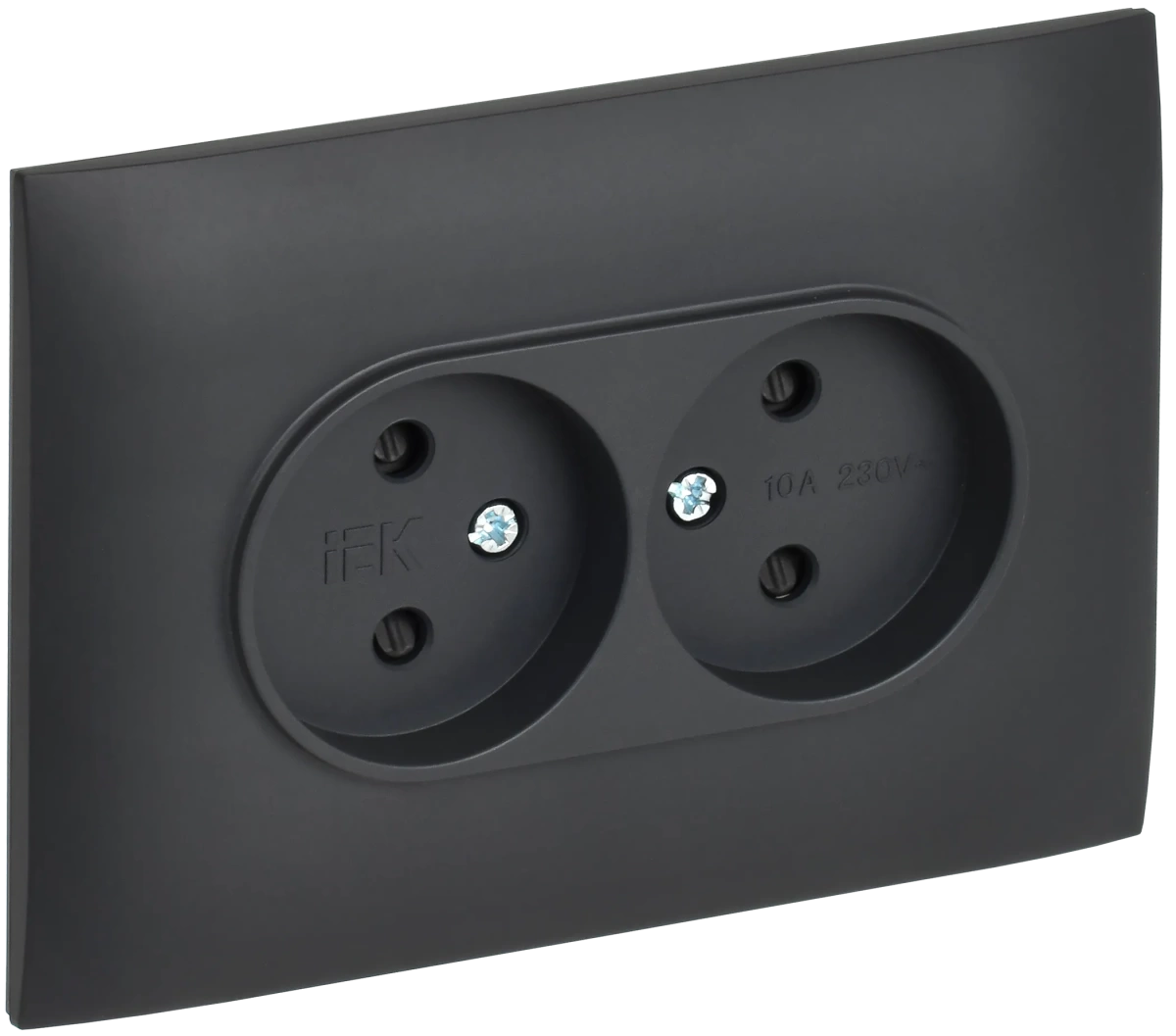 Наименование в каталоге SKANDY Розетка 2-местная без заземления с защитными шторками 10А в сборе SK-R09T титан IEK