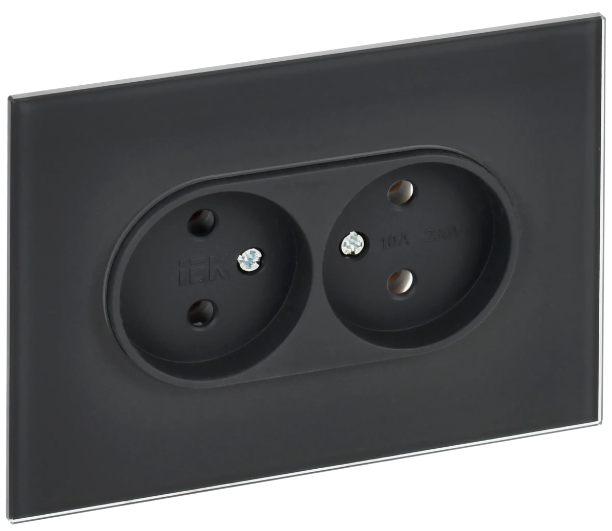 Наименование в каталоге SKANDY Розетка 2-местная без заземления без защитных шторок для плоской вилки 10А SK-R03G графит IEK
