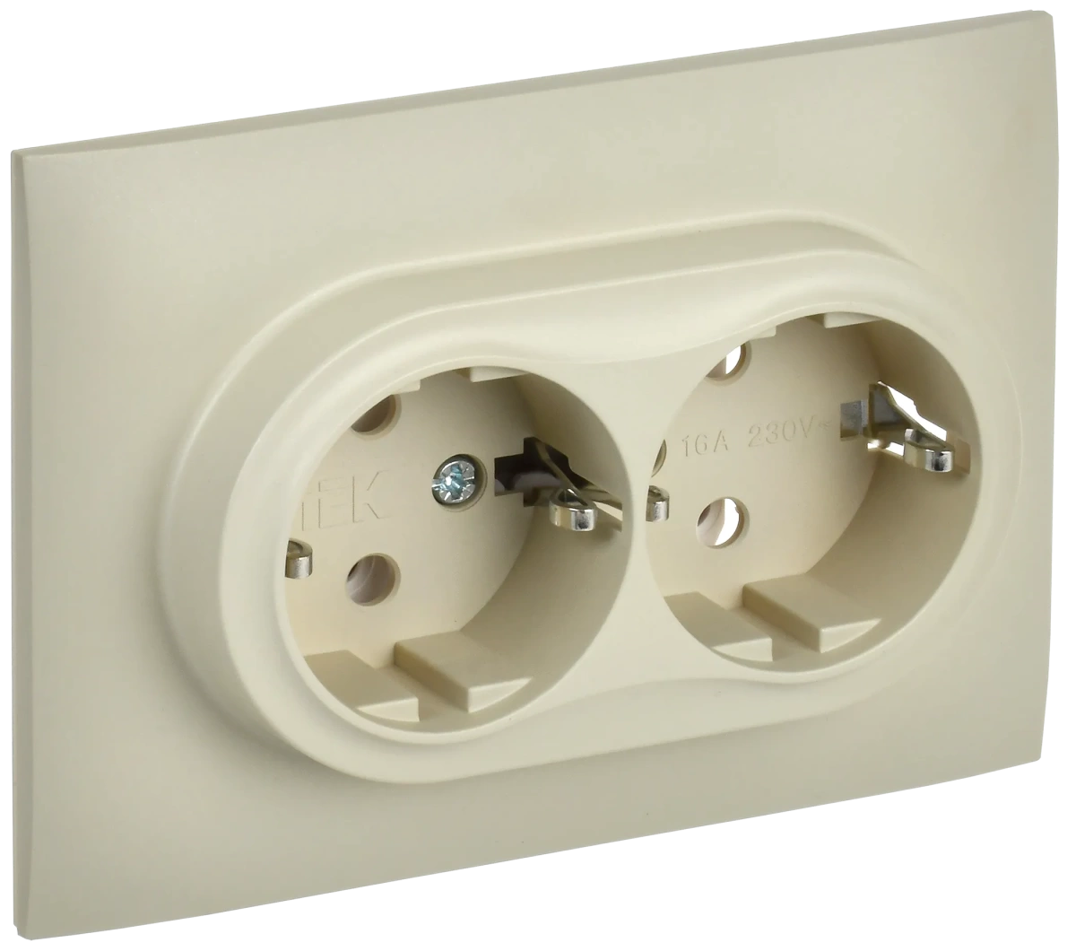 Наименование в каталоге SKANDY Розетка 2-местная с заземлением без защитных шторок 16А в сборе SK-R08B бежевый IEK