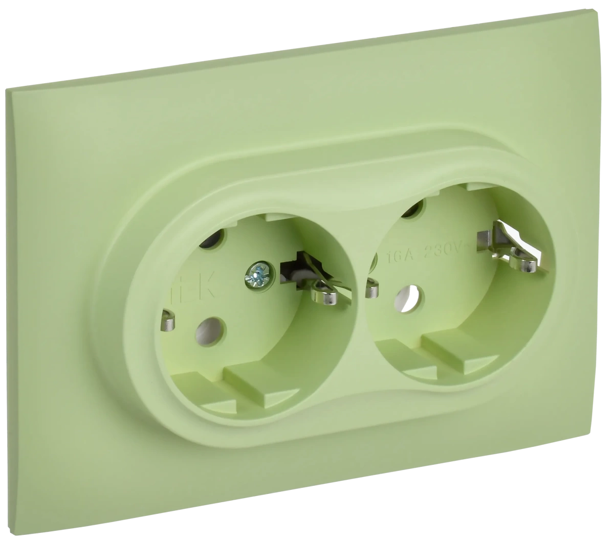 Наименование в каталоге SKANDY Розетка 2-местная с заземлением без защитных шторок 16А в сборе SK-R08G мятный IEK