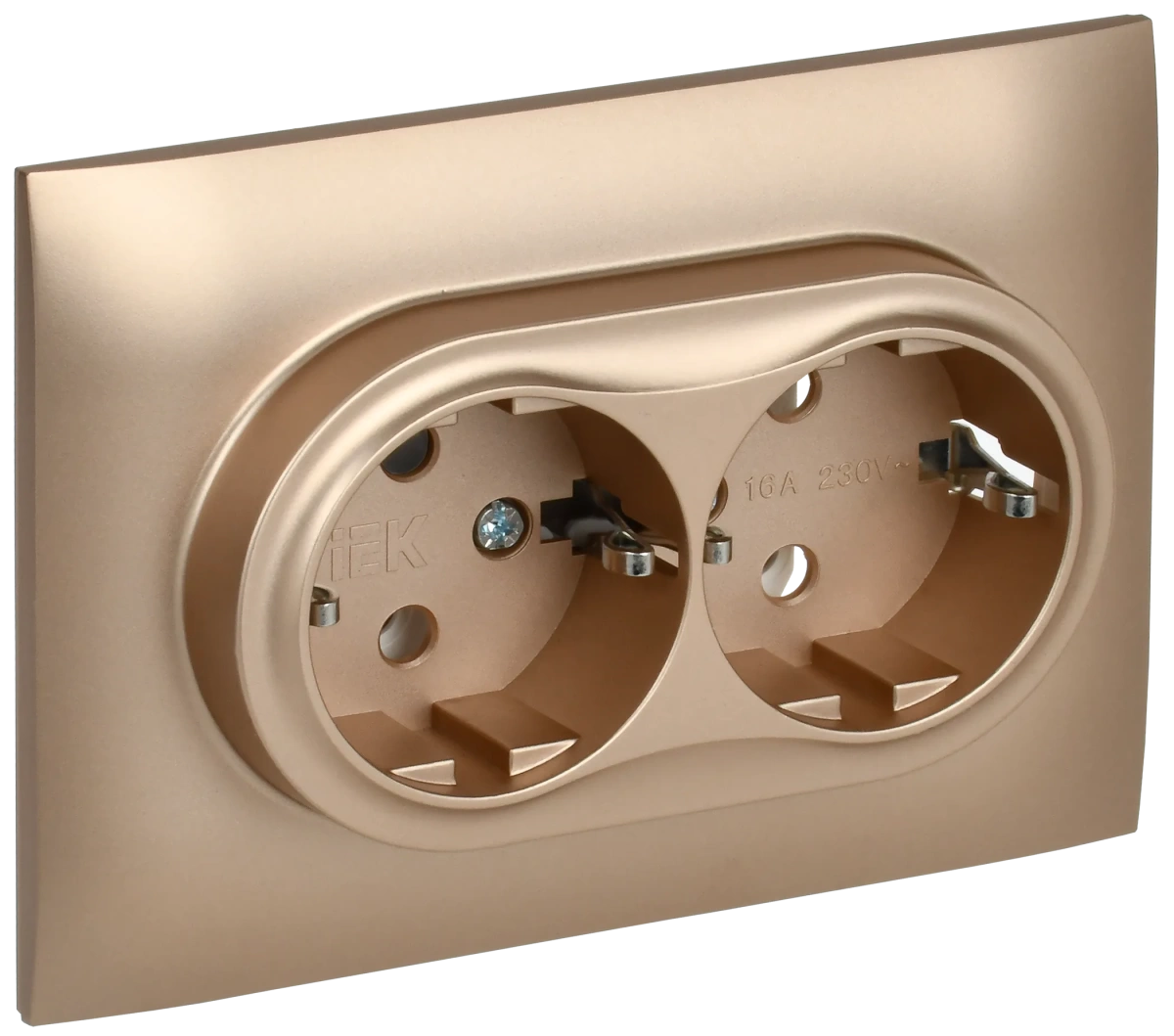 Наименование в каталоге SKANDY Розетка 2-местная с заземлением без защитных шторок 16А в сборе SK-R08Sa песочный IEK
