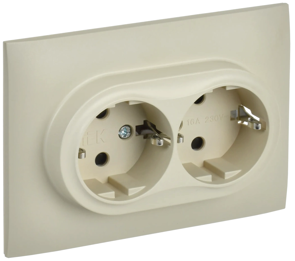 SKANDY Розетка 2-местная с заземлением с защитными шторками 16А в сборе SK-R07B бежевый IEK IEK (ИЭК) SK-R24-16-K10-F