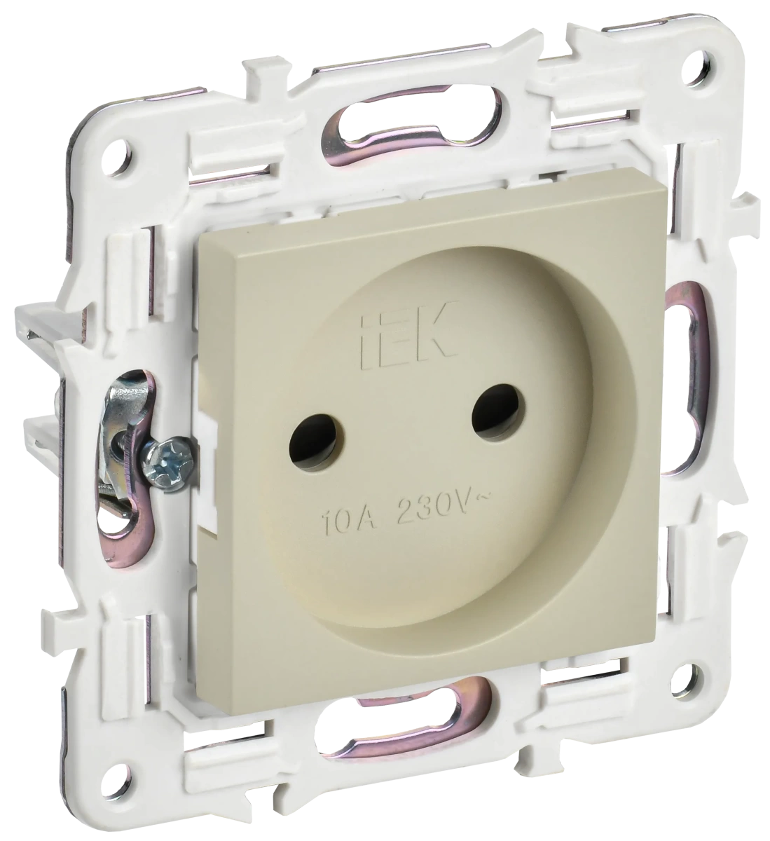 Наименование в каталоге SKANDY Розетка без заземления с защитными шторками 10А SK-R01B бежевый IEK