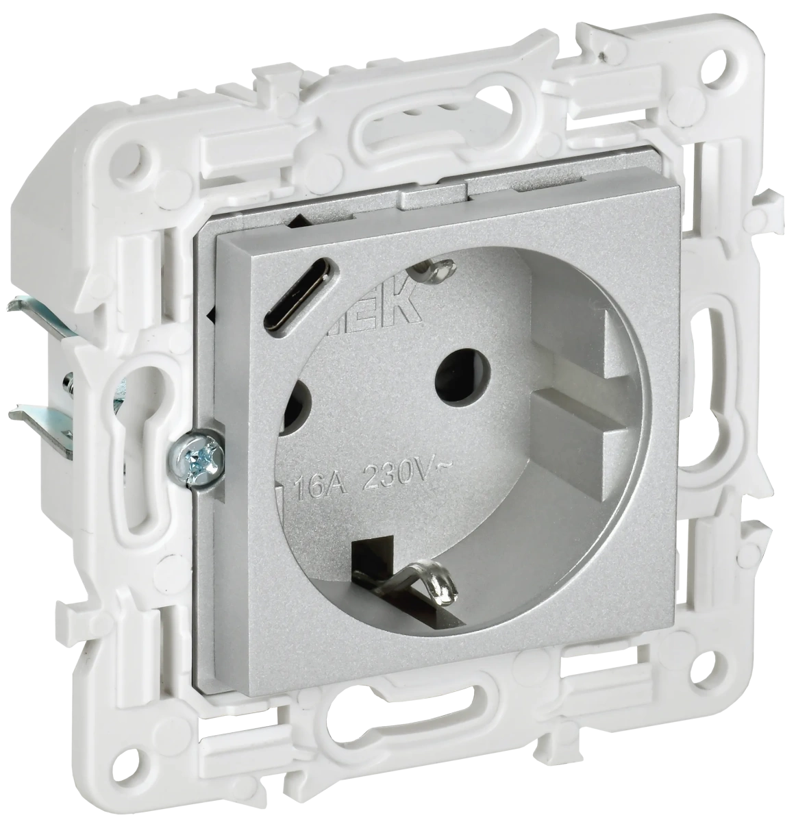 SKANDY Розетка с заземлением с защитными шторками 16А с USB C 18Вт SK-R17S серебряный IEK IEK (ИЭК) SK-R14-16-U14-018-K23