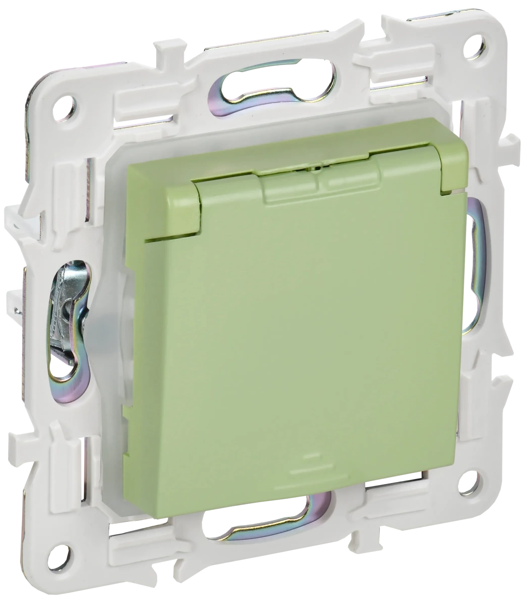 SKANDY Розетка 1-местная с заземлением с защитными шторками и крышкой 16А IP44 SK-R11G мятный IEK IEK (ИЭК) SK-R16-16-44-K06