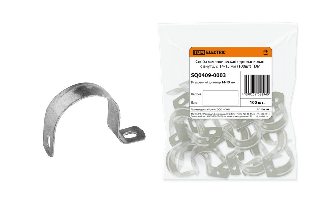 Скоба металлическая однолапковая с внутренним d 14-15 мм (100шт) TDM ELECTRIC SQ0409-0003