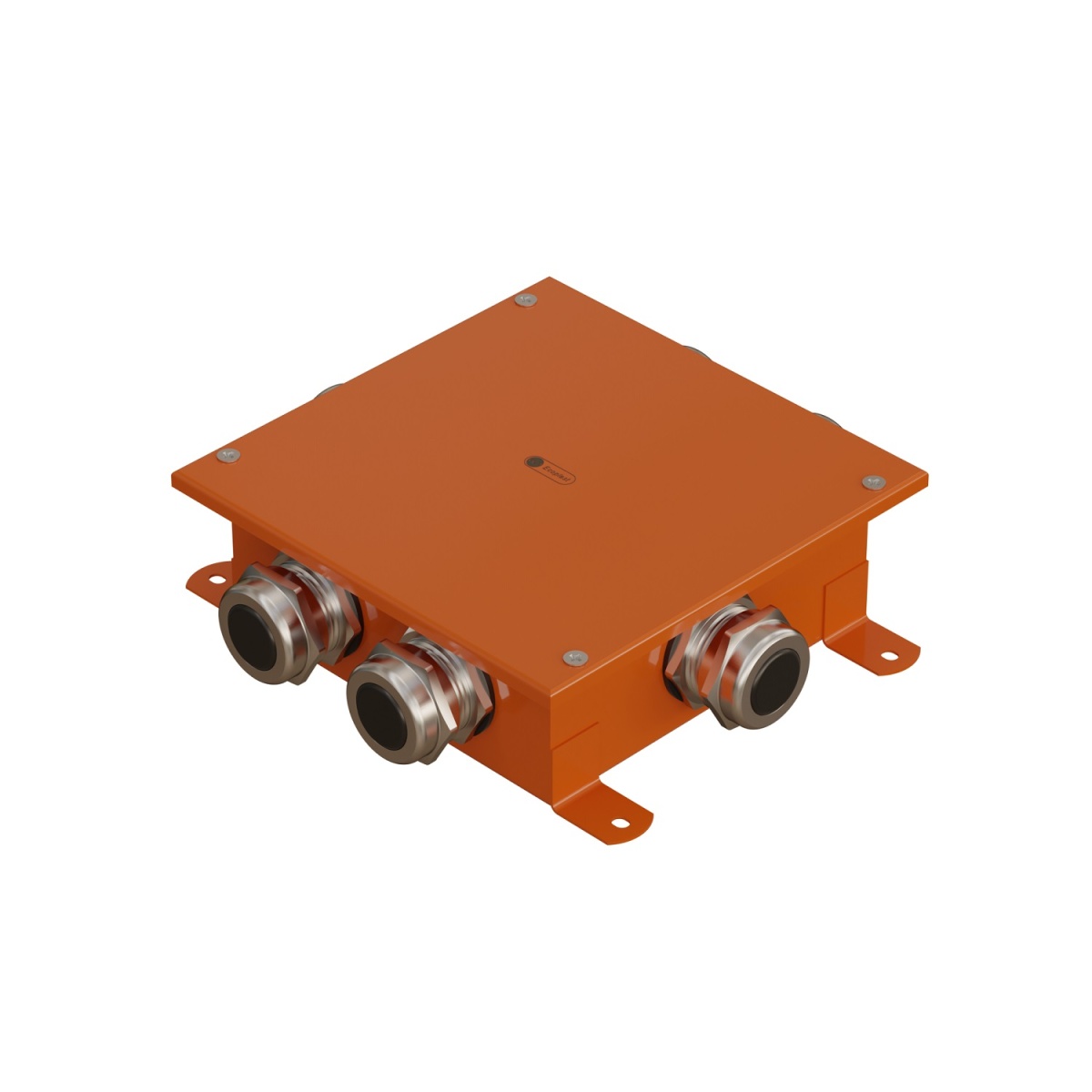 SMB165 Коробка металлическая, огн. E-110,о/п 164х164х65, 6 метал. гермоввода 18-25мм, IP66, 6P, (1,5-4 мм2), цвет оранж. Экопласт