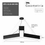 Полные технические характеристики Светильник LED Geometria Igrek SPO-143-B-40K-056 56Вт 4000K 3700Лм IP40 900х80 черный подвесной драйвер внутри ЭРА Б0058887