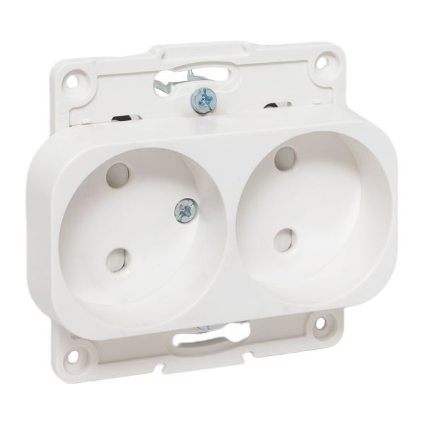 Наименование в каталоге Стокгольм Механизм Розетки 2-местной б/з 10А белый с защ. штор.