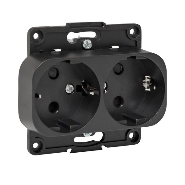 Наименование в каталоге Стокгольм Механизм Розетки 2-местной с/з 16А черный с защ. штор.