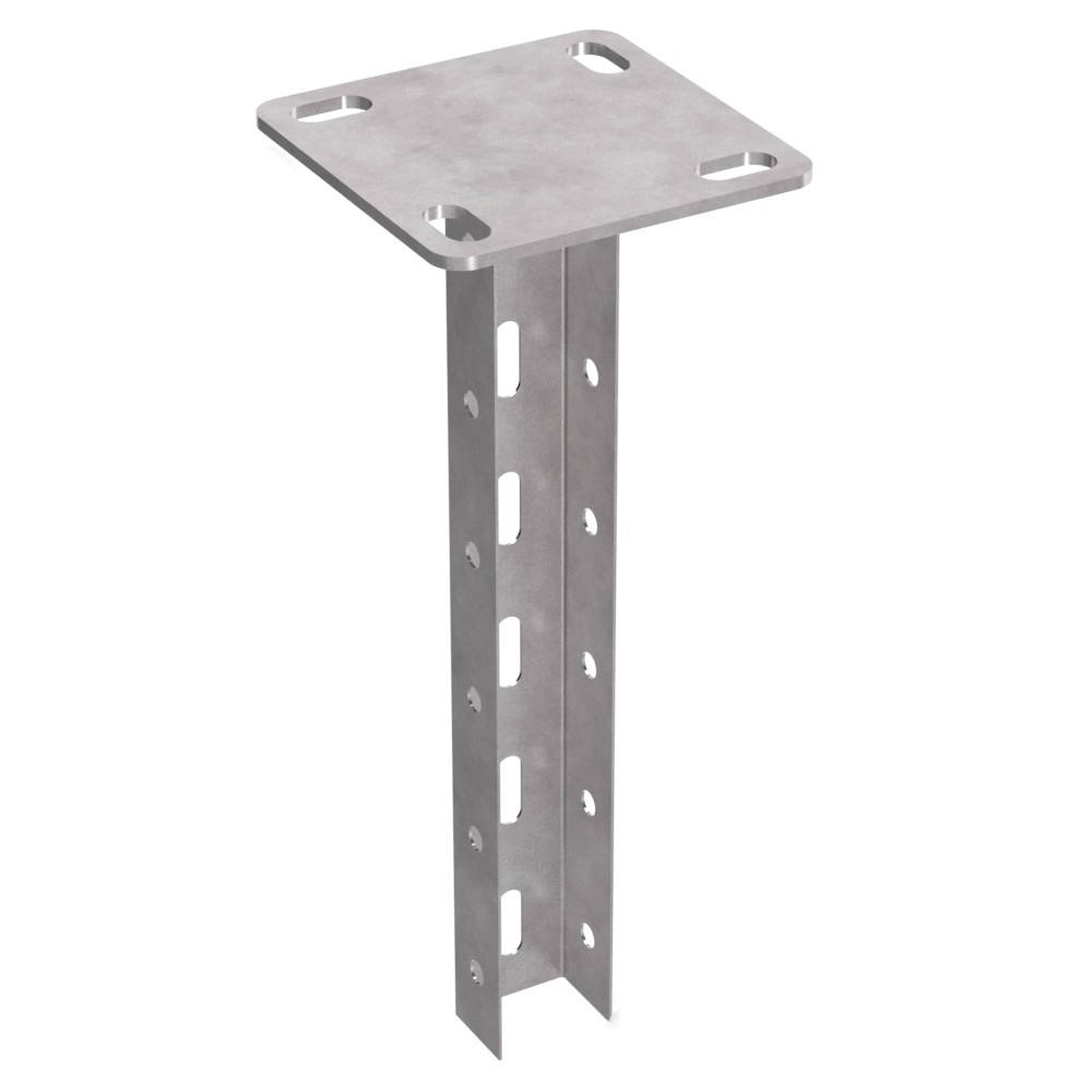 Описание Стойка потолочная для средних нагрузок 45х30 с пяткой 120х120 это опорное изделие, состоящее из П-образного профиля и квадратного основания, сваренных между собой. П - образный профиль и квадратное основание из стали 4 мм. позволяют крепить стойку к потолку. Разные исполнения по длине данного изделия дают возможность подбирать оптимальный вариант для формирования нужных конструкций. Вдоль всего профиля имеется перфорация по трем плоскостям, обеспечивающая удобный монтаж двухстороннего стоечного кронштейна на необходимой вам высоте. Ширина профиля обеспечивает дополнительную жесткость и прочность создаваемых конструкций кабеленесущих систем.