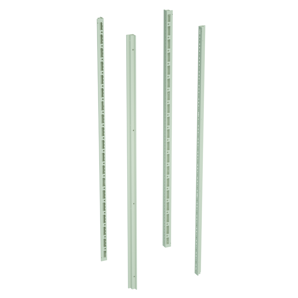 Описание Стойки выполнены из окрашенного замкнутого перфорированного профиля. Комплект состоит из 4-х стоек. Материал: окрашенная сталь 1,5 мм.