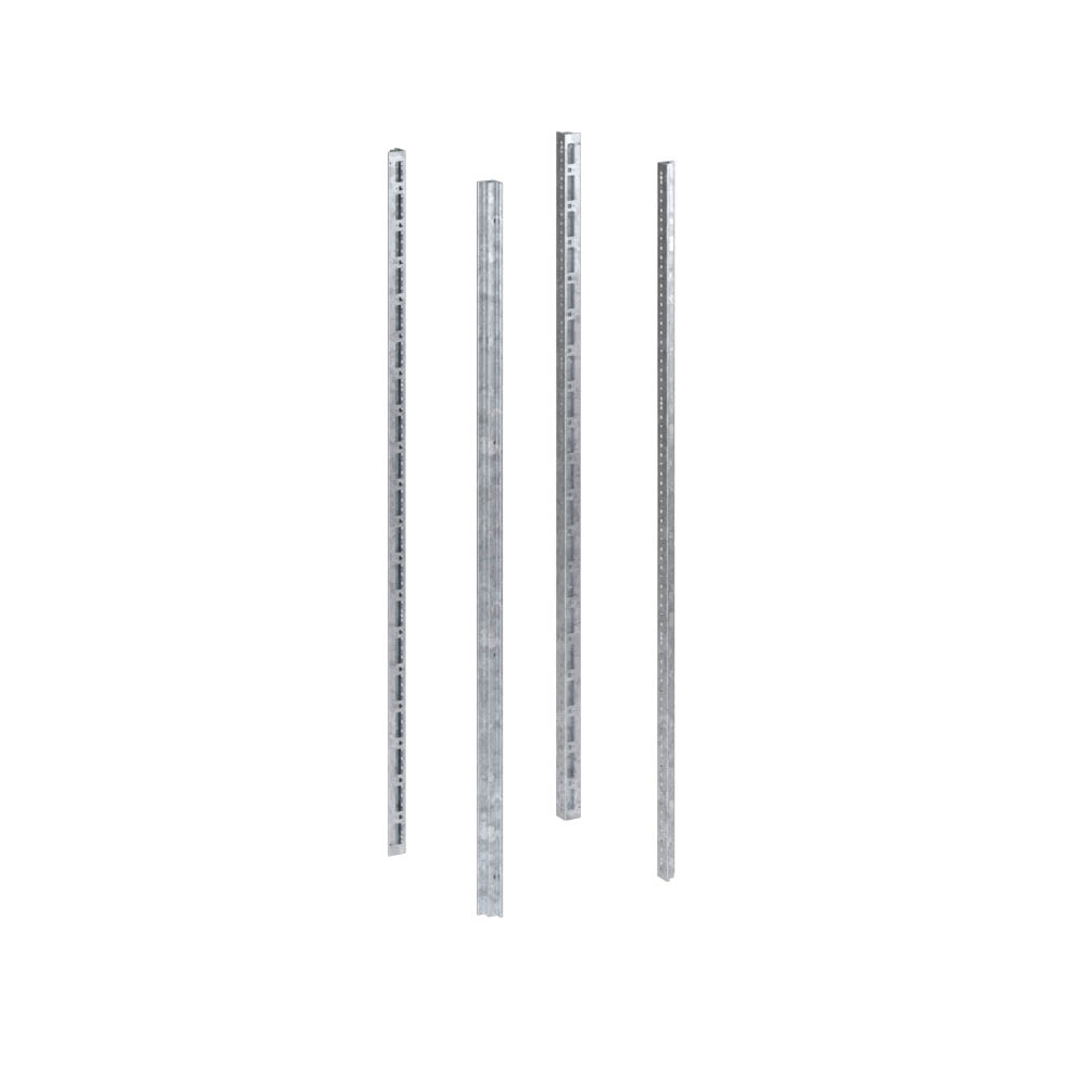 Описание Стойки выполнены из оцинкованного замкнутого перфорированного профиля. Комплект состоит из 4-х стоек. Материал: оцинкованная сталь 1,5 мм.