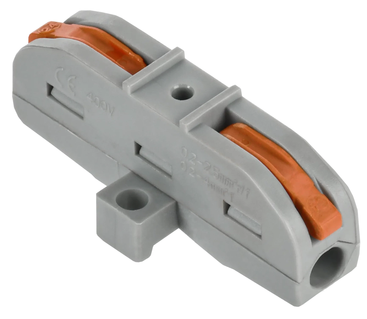 Описание Клемма строительно-монтажная проходная с площадкой серии 222 предназначена для соединения одножильных и многожильных медных проводников без использования инструмента в электрических сетях переменного и постоянного тока. Клемма допускает многократное присоединение и отсоединение проводников. Количество подключаемых проводников - 1/1.