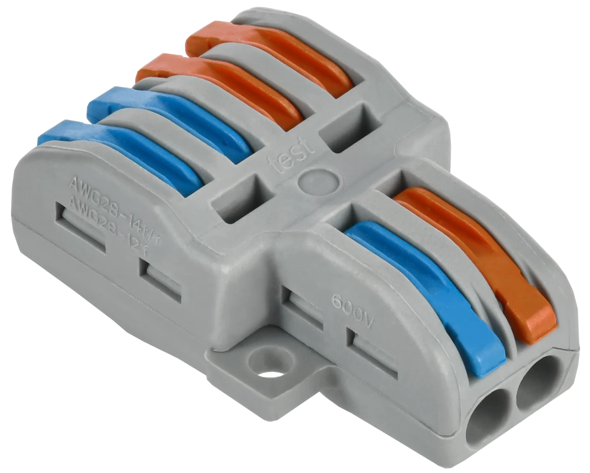 Описание Клемма строительно-монтажная проходная разветвительная серии 222 предназначена для соединения одножильных и многожильных медных проводников без использования инструмента в электрических сетях переменного и постоянного тока. Клемма допускает многократное присоединение и отсоединение проводников. Количество подключаемых проводников - 2/4.