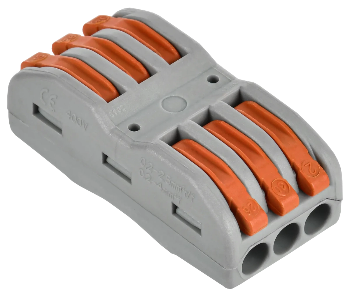 Описание Клемма строительно-монтажная проходная серии 222 предназначена для соединения одножильных и многожильных медных проводников без использования инструмента в электрических сетях переменного и постоянного тока. Клемма допускает многократное присоединение и отсоединение проводников. Количество подключаемых проводников - 3/3.