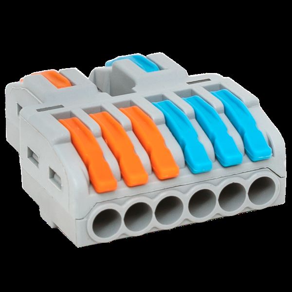 Наименование в каталоге Строительно-монтажная клемма СМК 222-426 разветвительная 6 выходов 0,08-4 мм2 EKF