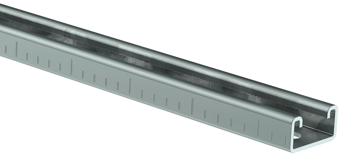 Описание STRUT-профиль обладает высокой несущей способностью и универсальностью. Из профилей изготавливаются стойки, консольные кронштейны и траверсы, создаются комплексные решения для организации кабельных трасс и прочих инженерных сетей. STRUT-профиль перфорированный, рассчитан на фиксацию несущих элементов канальной гайкой и полнонарезным болтом. Профиль имеет перфорацию на основании 12,5х27 мм и боковую перфорацию диаметром 10,5 мм. По краям внутренних полок профиля имеется насечка, предотвращающая продольное смещение монтируемых деталей.