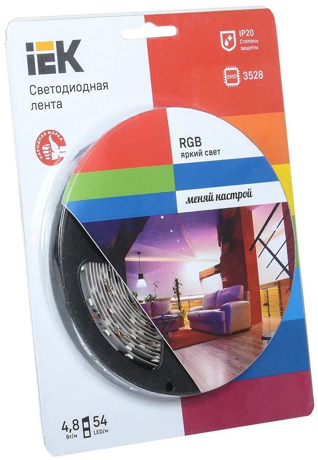 Лента LED 5м блистер LSR-3528RGB54-4.8-IP20-12V IEK-eco (кр. 1шт.) ИЭК