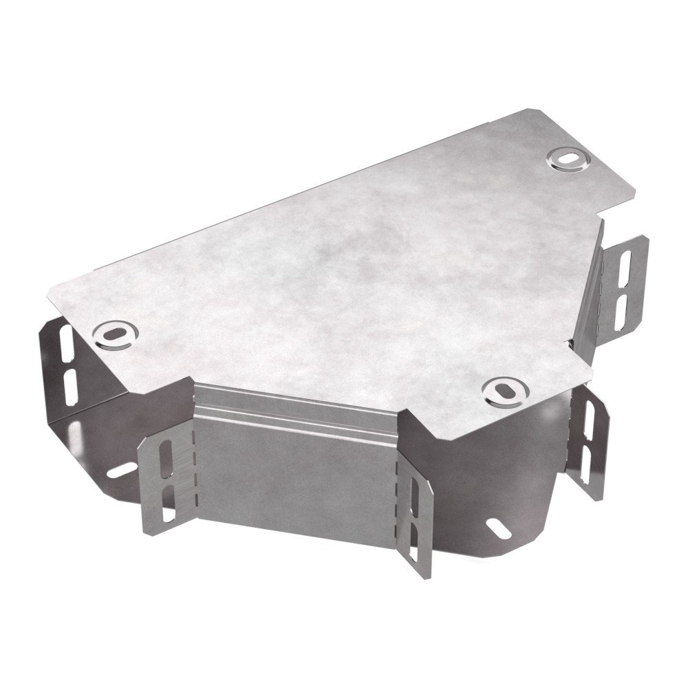 Описание Аксессуары изготовленные из стали с защитным покрытием по методу Сендзимира – это изделия, на которых защитное цинковое покрытие было нанесено на листовую сталь перед изготовлением. Толщина защитного покрытия варьируется от 10 до 22мкм. Климатическое исполнение изделий УХЛ2, что предусматривают эксплуатацию в помещении и под навесом, при температуре эксплуатации от -80 до +150 градусов С. Т-образный ответвитель предназначен для разветвления кабельных трасс в горизонтальном направлении,для перфорированных и глухих лотков. В комплект входит крышка.