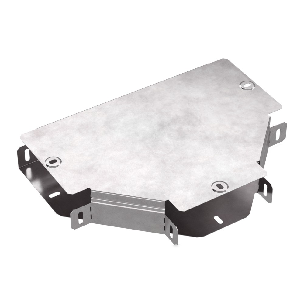 Описание Аксессуары изготовленные из стали с защитным покрытием по методу Сендзимира – это изделия, на которых защитное цинковое покрытие было нанесено на листовую сталь перед изготовлением. Толщина защитного покрытия варьируется от 10 до 22мкм. Климатическое исполнение изделий УХЛ2, что предусматривают эксплуатацию в помещении и под навесом, при температуре эксплуатации от -80 до +150°С. Т-образный ответвитель предназначен для разветвления кабельных трасс в горизонтальном направлении,для перфорированных и глухих лотков. В комплект входит крышка.