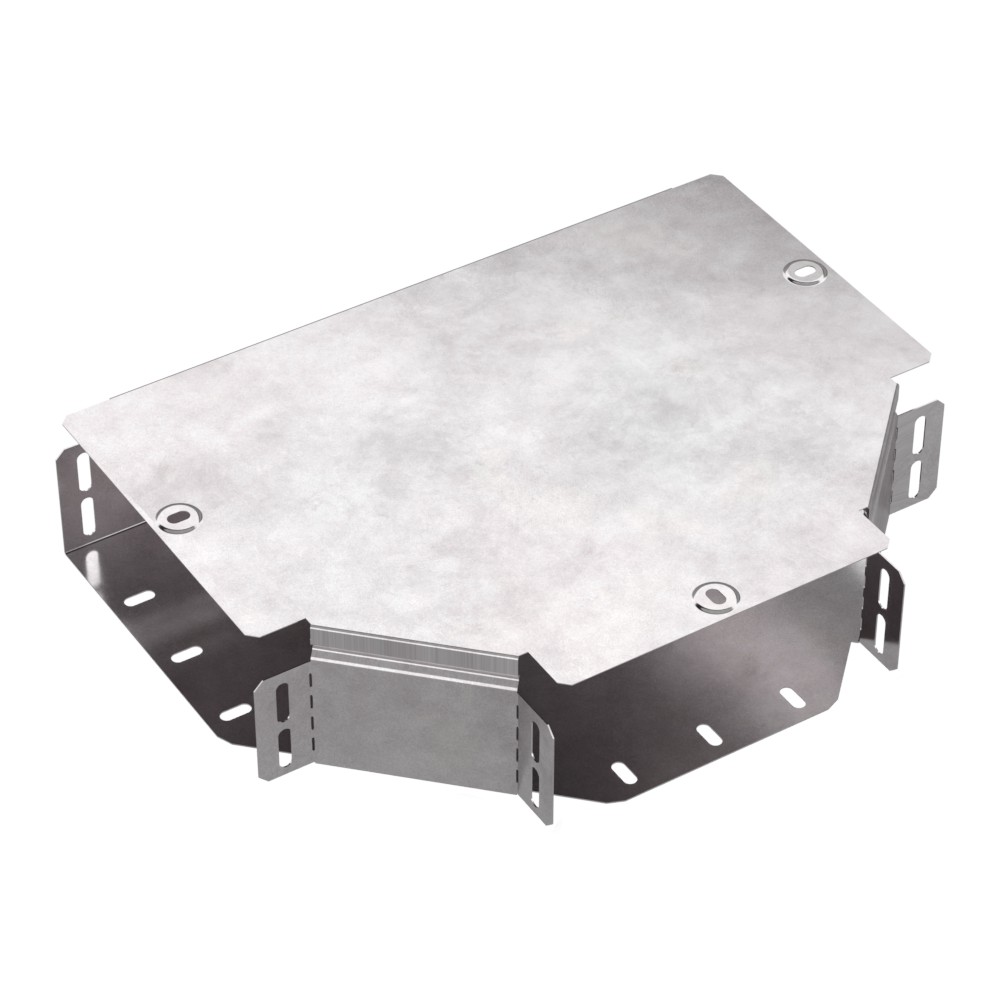 Описание Аксессуары изготовленные из стали с защитным покрытием по методу Сендзимира – это изделия, на которых защитное цинковое покрытие было нанесено на листовую сталь перед изготовлением. Толщина защитного покрытия варьируется от 10 до 22мкм. Климатическое исполнение изделий УХЛ2, что предусматривают эксплуатацию в помещении и под навесом, при температуре эксплуатации от -80 до +150 градусов С. Т-образный ответвитель предназначен для разветвления кабельных трасс в горизонтальном направлении,для перфорированных и глухих лотков. В комплект входит крышка.