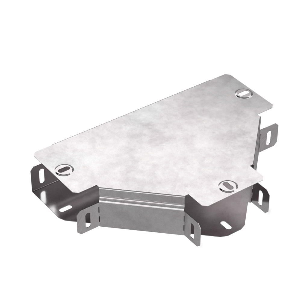 Описание Аксессуары изготовленные из стали с защитным покрытием по методу Сендзимира - это изделия, на которых защитное цинковое покрытие было нанесено на листовую сталь перед изготовлением. Толщина защитного покрытия варьируется от 10 до 22мкм. Климатическое исполнение изделий УХЛ2, что предусматривают эксплуатацию в помещении и под навесом, при температуре эксплуатации от -80 до +150С. Т-образный ответвитель предназначен для разветвления кабельных трасс в горизонтальном направлении, для перфорированных и глухих лотков. В комплект входит крышка.