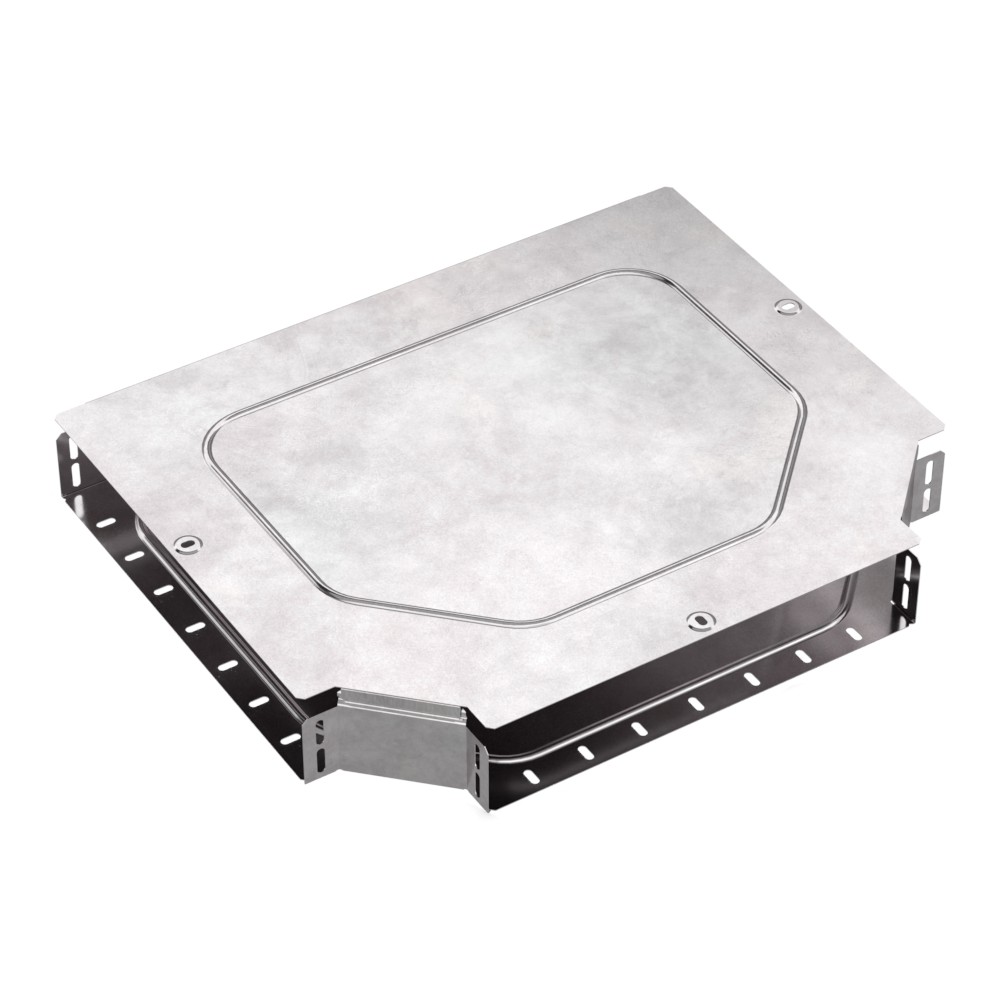 Описание Аксессуары изготовленные из стали с защитным покрытием по методу Сендзимира – это изделия, на которых защитное цинковое покрытие было нанесено на листовую сталь перед изготовлением. Толщина защитного покрытия варьируется от 10 до 22мкм. Климатическое исполнение изделий УХЛ2, что предусматривают эксплуатацию в помещении и под навесом, при температуре эксплуатации от -80 до +150 градусов С. Т-образный ответвитель предназначен для разветвления кабельных трасс в горизонтальном направлении,для перфорированных и глухих лотков. В комплект входит крышка.