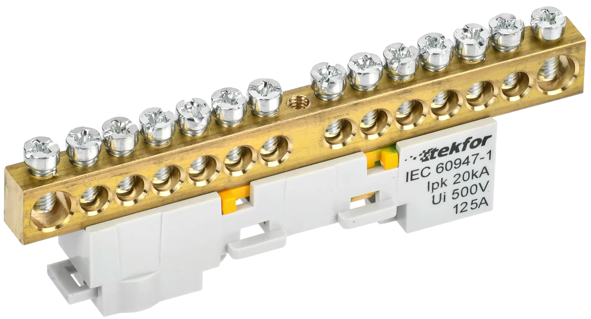Наименование в каталоге TEKFOR Шина PE земля неизолированная на универсальном держателе 8х12-14-Ж IEK