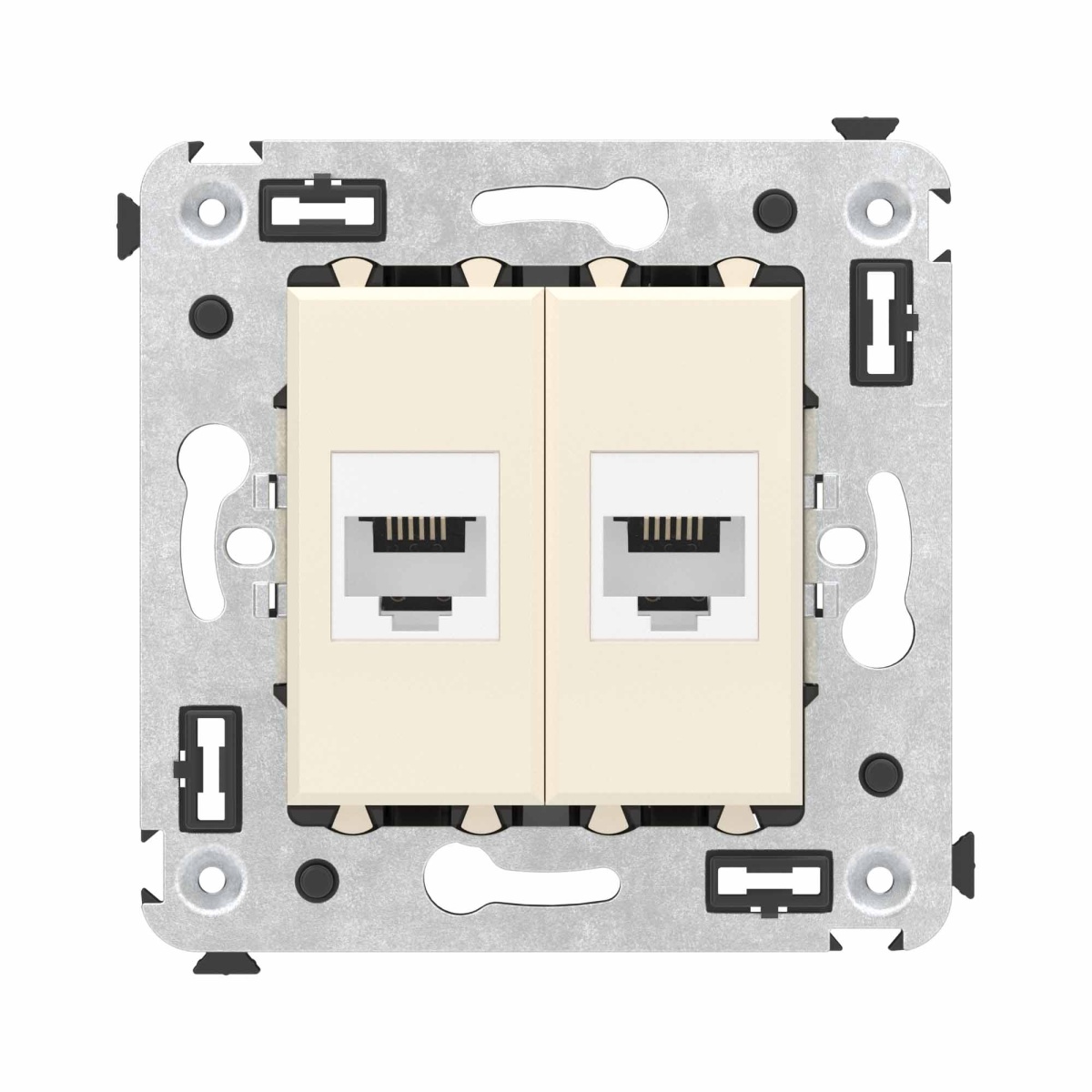 Телефонная розетка RJ-12 без шторки в стену двойная, "Avanti", "Ванильная дымка"