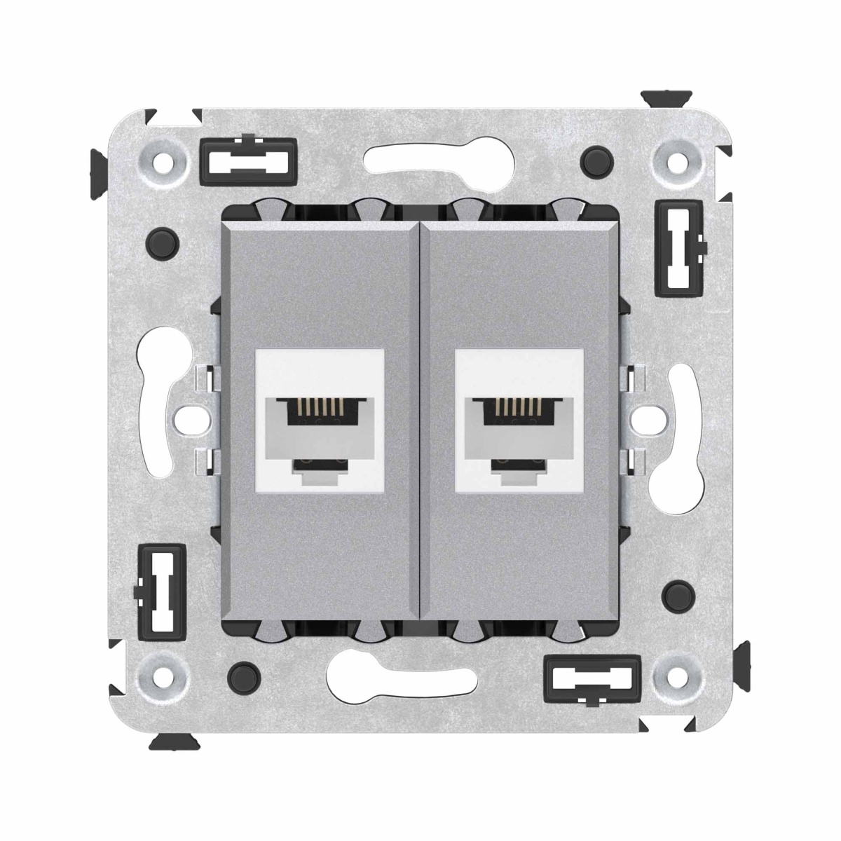 Телефонная розетка RJ-12 без шторки в стену двойная, "Avanti", "Закаленная сталь"