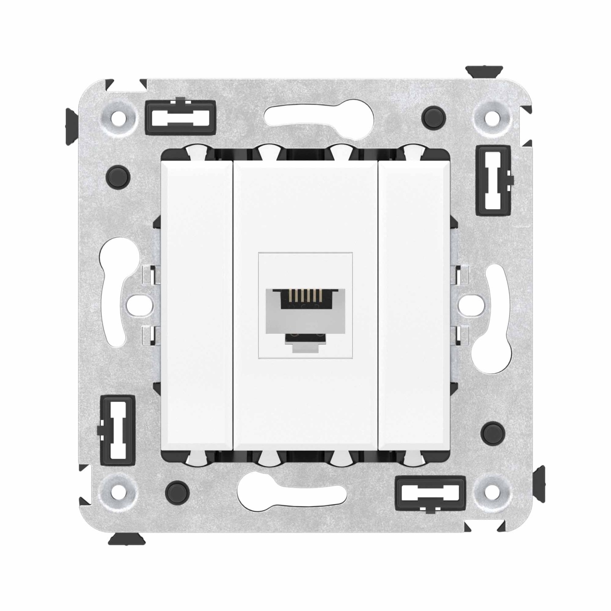 Комплектация механизм телефонной розетки RJ-12 – 1 шт|каркас – 1 шт|либо заглушка 1 модуль – 1 шт|либо заглушка 0,5 модуля – 2 шт