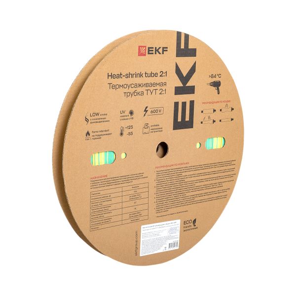 Термоусаживаемая трубка ТУТ нг 16/8 жел-зел рулон EKF PROxima