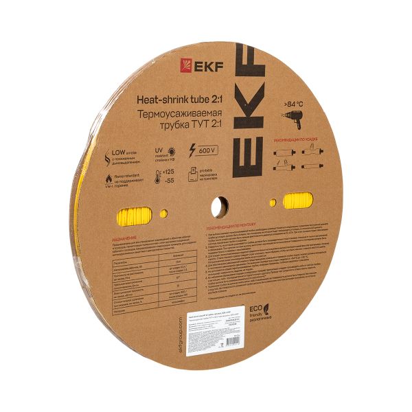Полные технические характеристики Трубка термоусаживаемая ТУТ нг 2/1 желтая рулон PROxima EKF tut-2-y