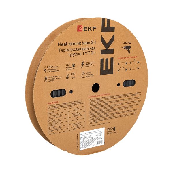 Термоусаживаемая трубка ТУТ нг 30/15 черная рулон EKF PROxima
