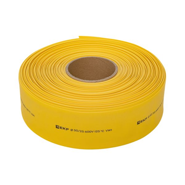 Термоусаживаемая трубка ТУТ нг 50/25 желтая рулон EKF PROxima