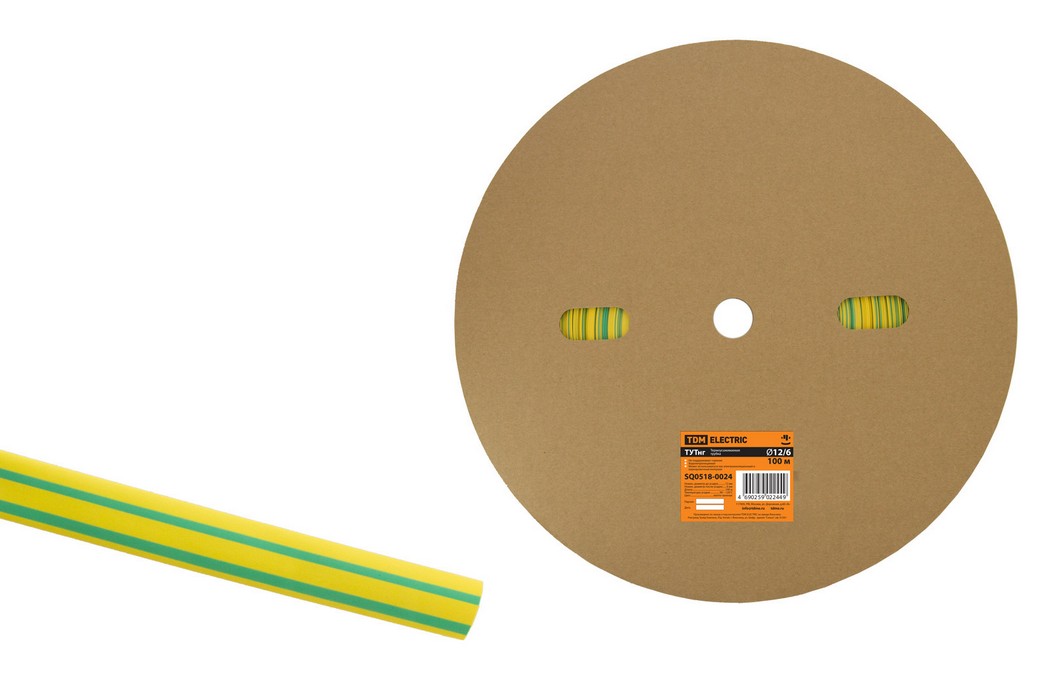 Полные технические характеристики Термоусаживаемая трубка ТУТнг 12/6 желто-зеленая (100 м/ролл) TDM ELECTRIC SQ0518-0024