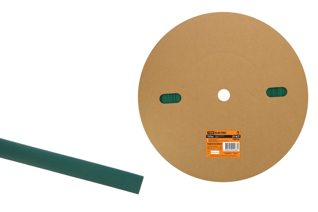 Термоусаживаемая трубка ТУТнг 14/7 зеленая (100 м/ролл) TDM ELECTRIC SQ0518-0032