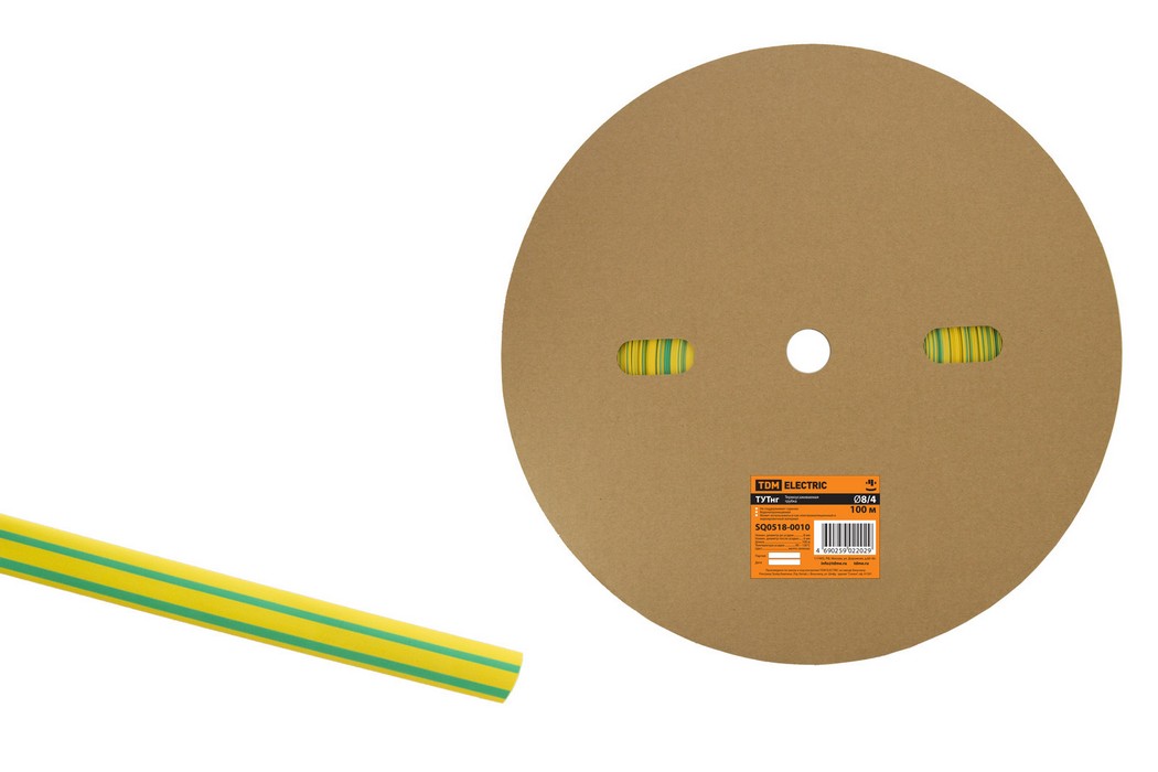 Полные технические характеристики Термоусаживаемая трубка ТУТнг 8/4 желто-зеленая (100 м/ролл) TDM ELECTRIC SQ0518-0010